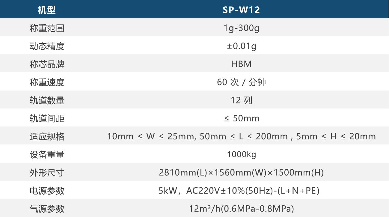 SP-W12 是一台十二列条包称重机,整机设计及制造遵循 GMP、cGMP、GAMP5、CRF21-part11、CE 的规范要求,主要用于条包灌装装量的在线检测分选。