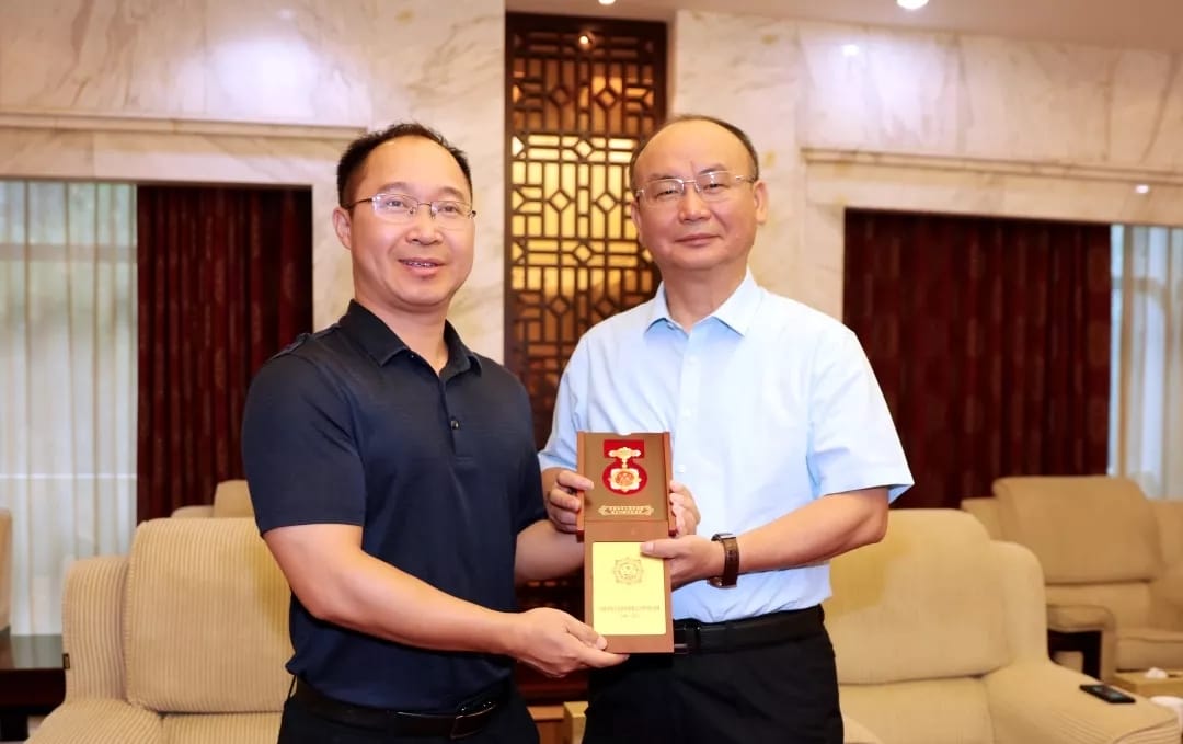 中华人民共和国70周年华诞到来之际,宁乡市总工会党组书记、副主席张立金9月21日莅临星空体育登录官网入口,星空全站APP下载科技,将党和国家授予的“庆祝中华人民共和国成立70周年”纪念章,交到星空体育登录官网入口,星空全站APP下载科技董事长兼总裁唐岳手上。张立金表示,纪念章代表着党和国家的嘉奖与嘱托,并向唐岳表示祝贺。