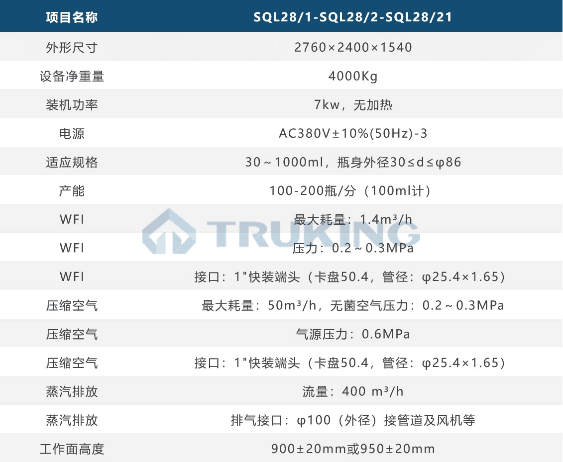 本机型可作为大输液瓶、糖浆瓶等容量大的玻璃瓶(30~1000ml)的精洗设备,进一步清除瓶子内外壁少量的较容易冲洗的灰尘等(对于容易清洗的瓶子,可只配置精洗机作为清洗设备)。