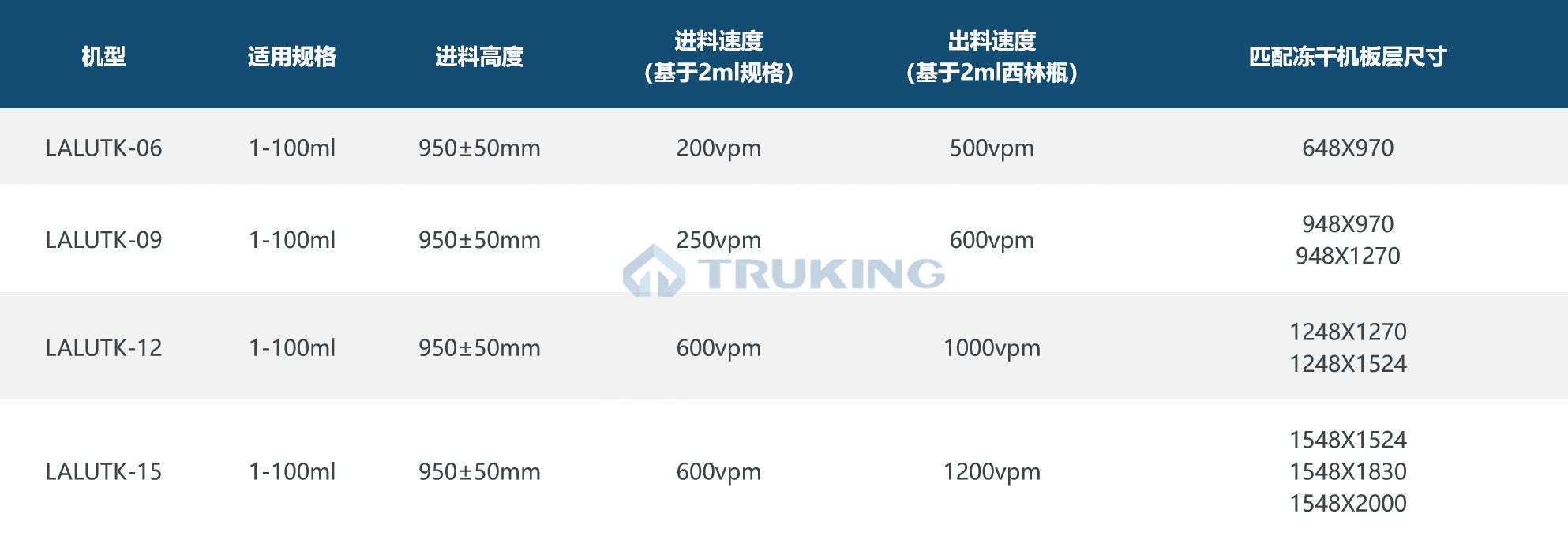 固定式进出料系统功能:小瓶输送、小瓶缓冲、倒瓶剔除、冻干机板层对接、理瓶进料和出料输送等。