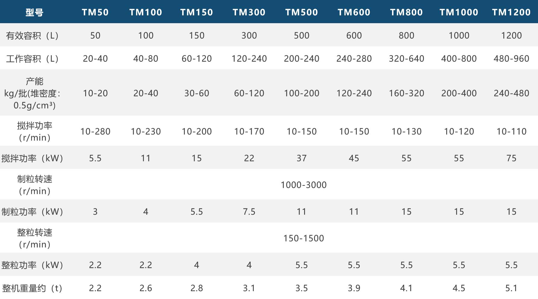 TM 系列湿法制粒机集混合、制粒、整粒于一体;适用于制药、食品、化工、轻工等行业中对粉状物料进行混合、制粒。本机能满足制药、食品、保健品等各种颗粒剂、片剂、胶囊剂等剂型所需颗粒的湿法制粒工艺。