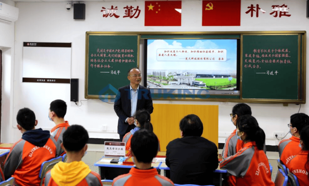 周辉、唐岳等领导和企业家来到“初心圆梦”班教室,与学生一起参加开班活动