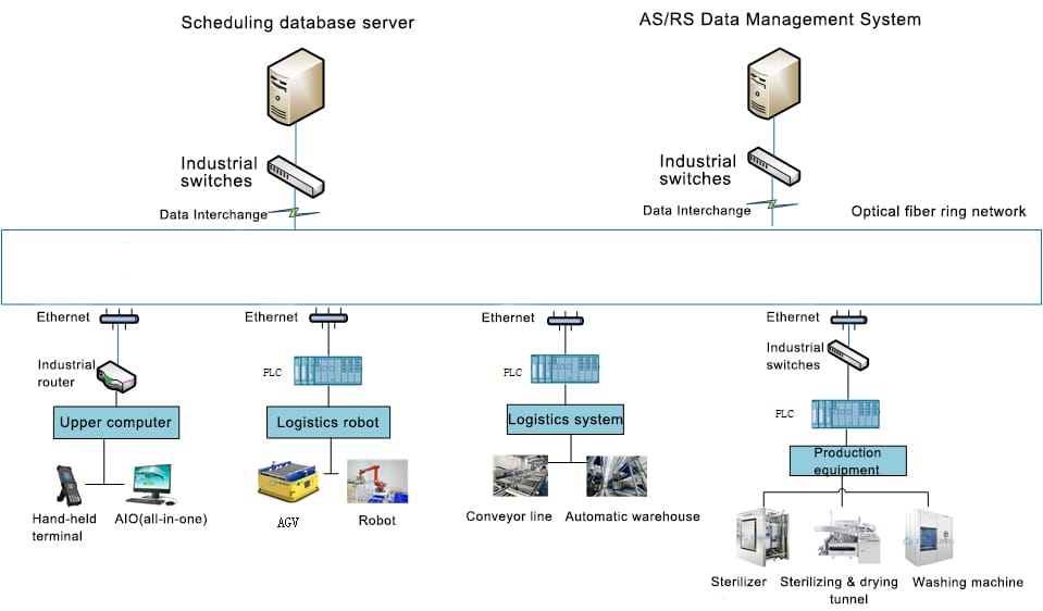 Ø Real-time monitoring operation data of pharmaceutical equipment and delivery system, optimize the material transfer process, realizethe flexible and efficient transportation of workshop materials.