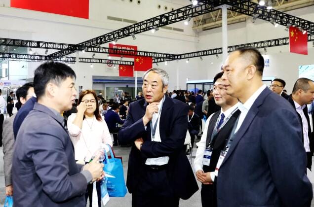 ↗ 星空体育登录官网入口,星空全站APP下载华通董事长马庆华(中)在展会上与客户交流