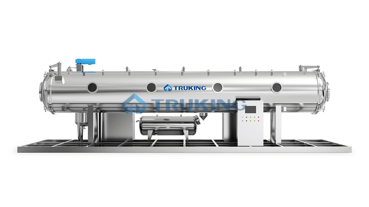 O secador de correia a vácuo é um equipamento de secagem a vácuo dedicado à alimentação e descarga contínua de extratos da medicina tradicional chinesa. Toda a máquina inclui sistema de alimentação, sistema host (incluindo sistema de aquecimento e sistema de refrigeração) e sistema de descarga, sistema de vácuo, sistema CIP e sistema de controle, etc. O extrato da medicina tradicional chinesa é transportado para o sistema de alimentação por uma bomba de parafuso e é distribuído uniformemente na correia transportadora. Ele entra em uma extremidade do secador, após aquecimento e resfriamento, o produto seco é retirado da correia transportadora na outra extremidade e coletado após esmagamento grosseiro.